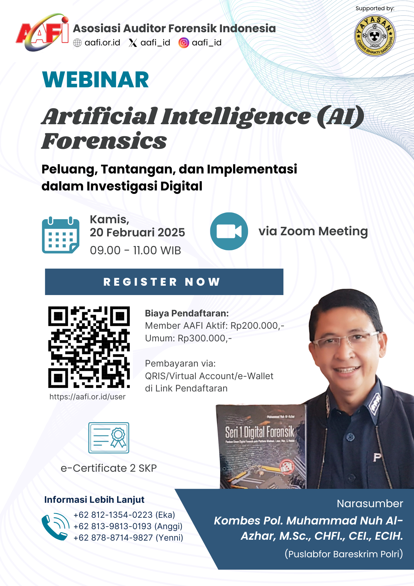 🎙 Narasumber: Kombes Pol. Muhammad Nuh Al-Azhar, M.Sc., CHFI., CEI., ECIH. (Sekretaris Puslabfor Bareskrim Polri)